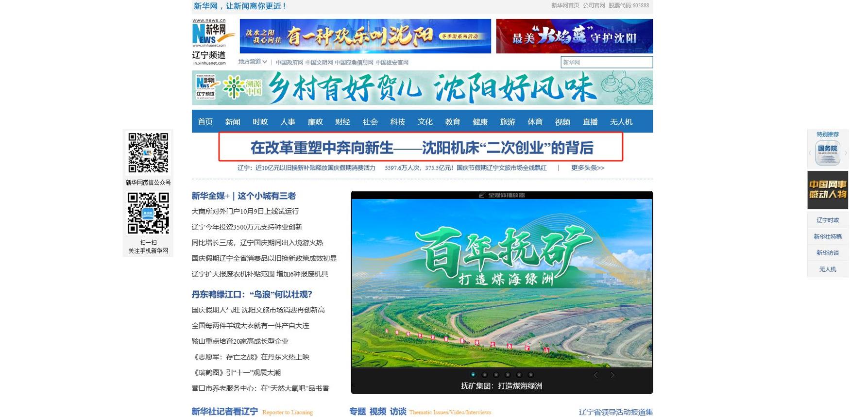 10月13日,,,新华社“中国经济样本视察”专题报道中,,,以“在刷新重塑中奔向新生”为题对沈阳机床刷新重整以来的自主自强、立异生长的做法和履历举行报道,,,并在《新华逐日电讯》、新华网官网、新华网客户端等多个媒体平台同步刊发和推送,,,点击量达600万+。。。。